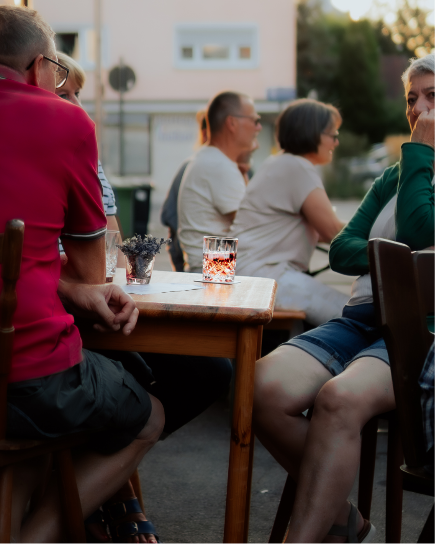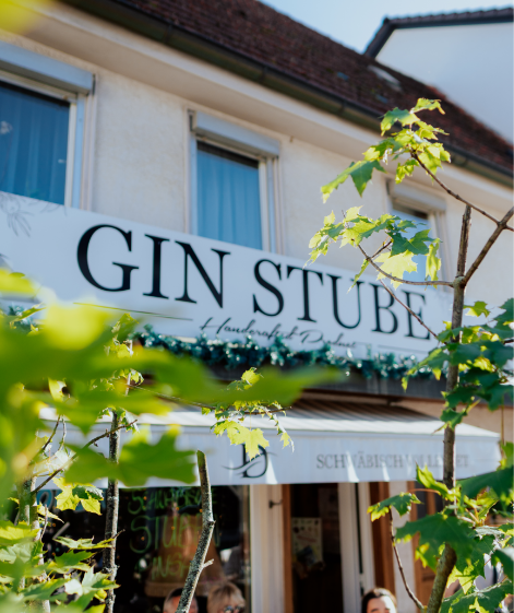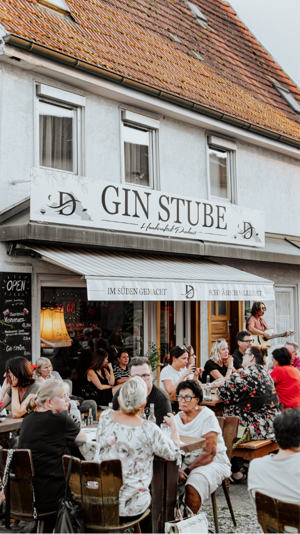 In der D-GIN Stube in Mössingen erwarten dich regionale Gins und wechselnde Spezialitäten wie Vesperplatten, Flammkuchen oder Bruschette.